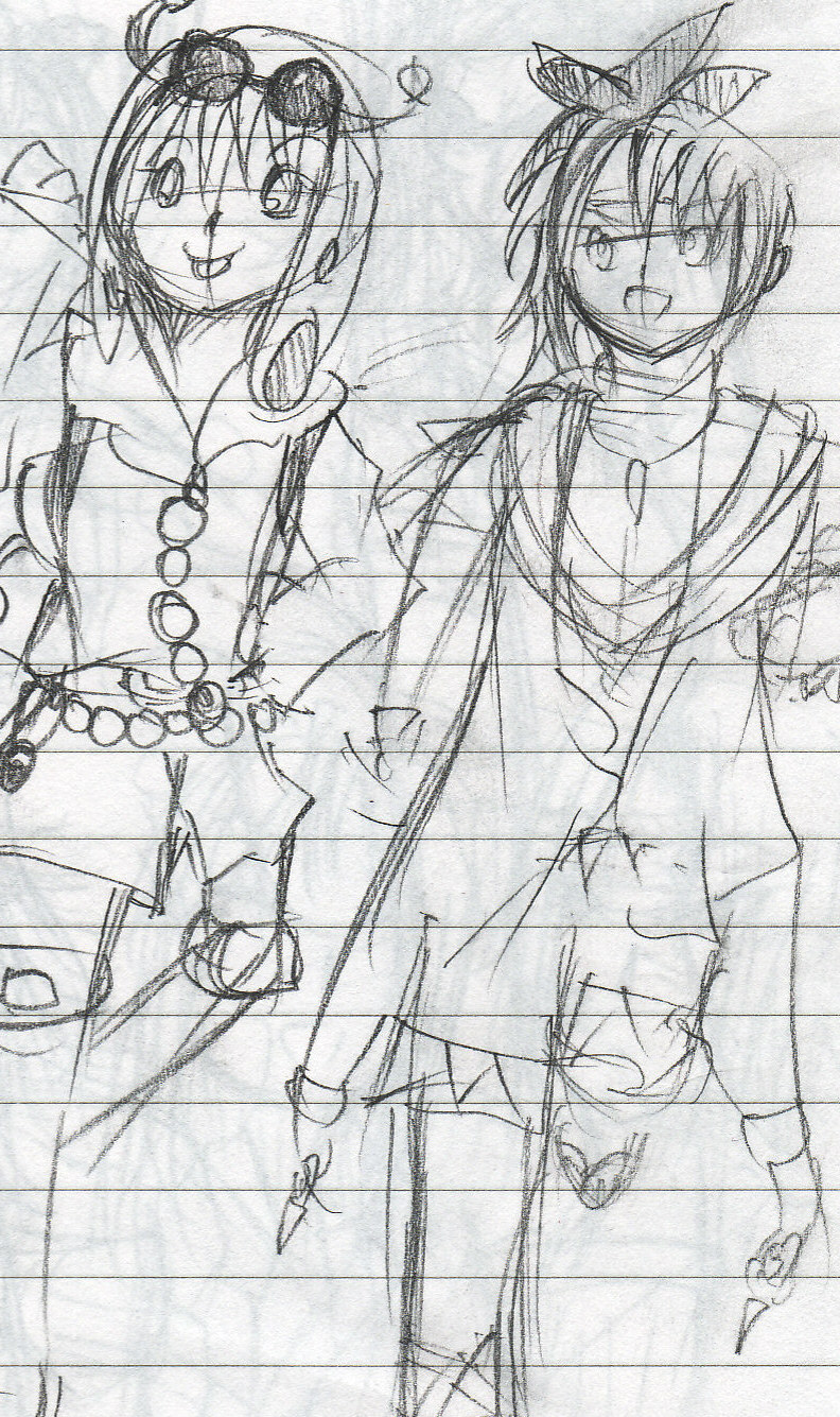 今回の絵は久々にやった銀の子たち!左がレディアン♀のレ・ディラ、右がオーダイル♂のワ・ニノムです。