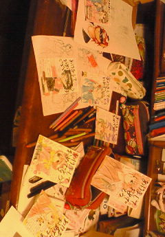 シャメは年賀を送る前のアクリルの絵の具を乾かしている時のもの。(長い
